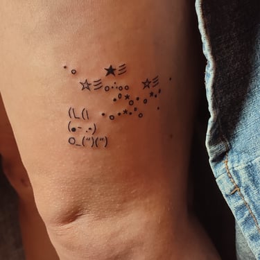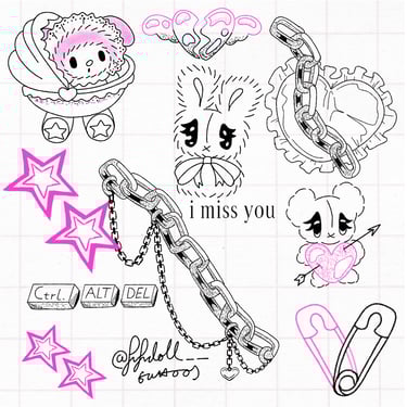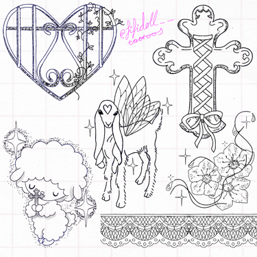 I offer unique handpoke tattoos that celebrate individuality and diversity. As a queer internet doll I create art from my constant stream of ahdh thought salad. I hope its yummy for you. x